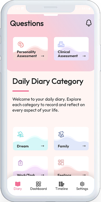 The goal is to create a mental health companion that helps users track their emotional journey, gain self-awareness, and take proactive steps toward improved mental wellness—all within a secure and intuitive platform.