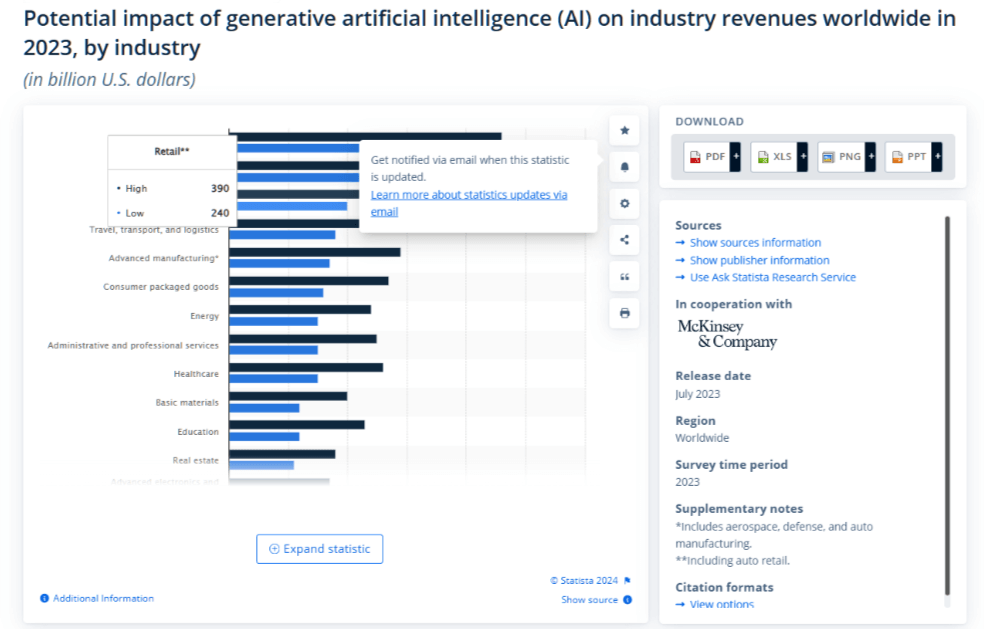 The build-up around AI is not without its reasons. Generative artificial intelligence has impacted annual revenue figures across most industries in 2023, from high-tech, retail, and hospitality to logistics, manufacturing, energy, and banking. Markets are experiencing unprecedented demand around data centers (the heart of the AI revolution). Nvidia is leading the charge of this AI boom, with a valuation of two trillion U.S. dollars in February 2024.