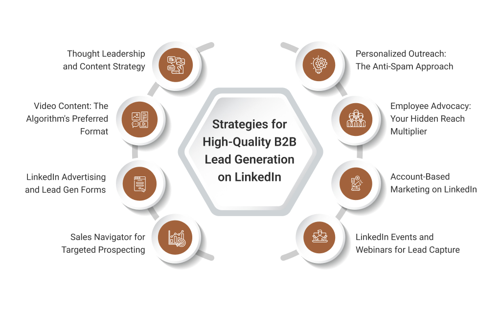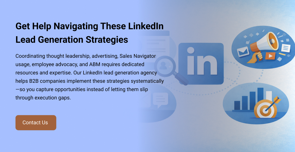 Optimizing your company page establishes the foundation for B2B lead generation on LinkedIn. Now we move to the strategies that actively generate leads. These tactics separate companies that generate LinkedIn leads accidentally from those who do it systematically.
