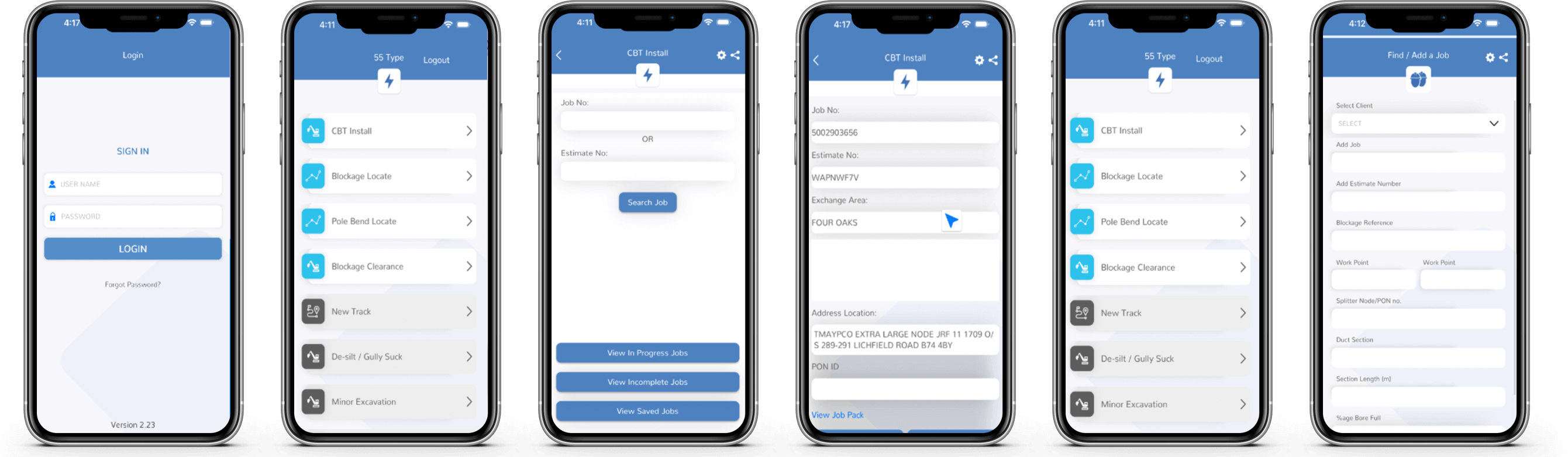 We aligned a team of eight to start the project. Like the challenge illustrated above, we built multiple modules according to the client’s needs. These included job management applications, field service reporting solutions, FSM communication software, dispatch software, mobile billing software, asset management applications, store management apps, etc. Each module was customizable according to the end-user and built for Android and iOS. Here are a few of them in detail.