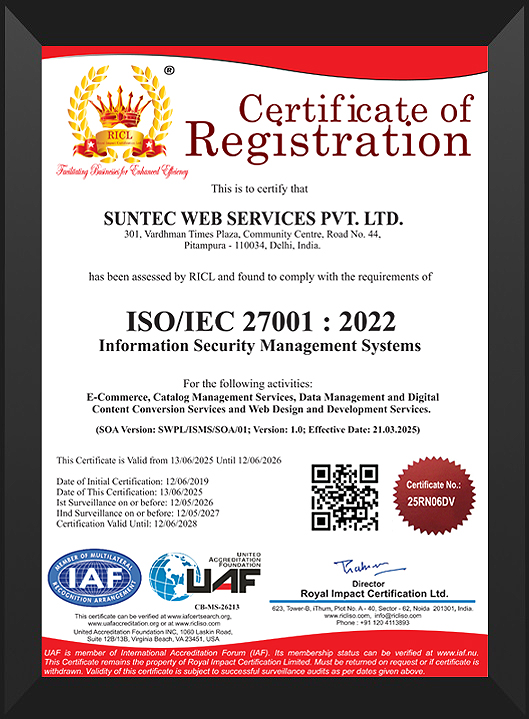 Obtaining ISO 27001:2022 certification demonstrates the company's commitment to safeguarding its critical data assets. Conformity with this standard means that SunTec India has put in place a system to manage risks related to the security of data owned or handled by the company, and that this system respects all the best practices and principles enshrined in this International Standard.