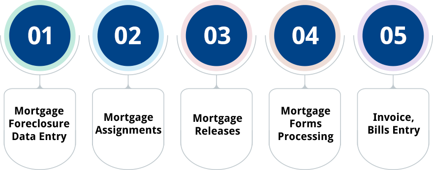 Our experienced professionals provide end-to-end support to real estate agents, housing authorities, realtors, title insurers, and other regulatory institutions in maintaining error-free, clean, and up-to-date data. Backed by a pool of subject matter experts, we extract data from Deed of Trust, County Clerk websites, Judicial Foreclosure Form, Federal Tax Liens, Homeowner Documents, and several Third Party Forms.
