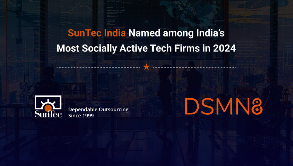 SunTec India is proud to announce its recognition as one of India's most active tech companies on social media for July 2024. This accolade comes from DSMN8 after an extensive review of 249 companies, focusing on their social media performance on LinkedIn and engagement over the past 30 days. Some other renowned companies that have been listed in this report are Infosys, HCL Software, Disney+Hotstar, Hitachi, ClearTrip, and Konika Minolta.