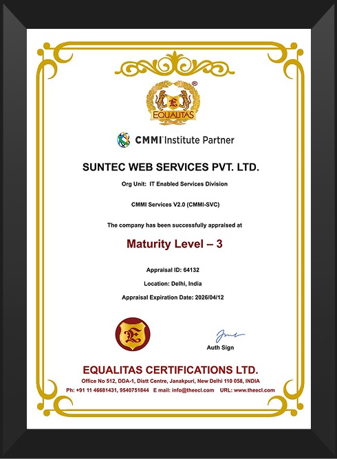 SunTec India has earned CMMI Maturity Level 3 appraisal for its IT Services Division